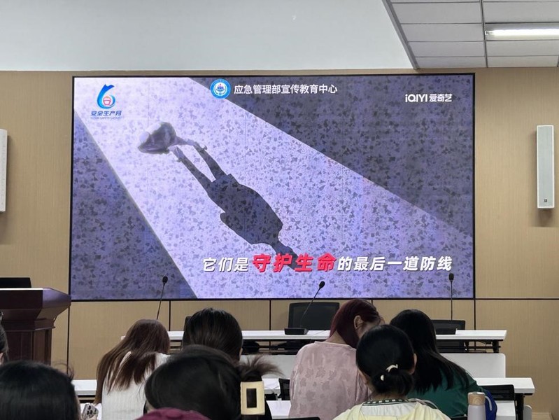 为加强毕业生安全教育,在本次培训课上,学员们首先观看了2024年全国“安全生产月”活动主题宣传片。今年6月是第23个全国“安全生产月”,主题为“人人讲安全、个个会应急——畅通生命通道”,主要聚焦“畅通生命通道”开展相关系列活动。观看结束后,全体学员对于“守护生命,关注安全,你我都是责任人”的生命安全观纷纷表示认同,表示要树牢“生命至上,安全第一”的理念,积极学安全、懂安全、会安全、做安全,不断提升安全意识和安全技能,传播安全正能量。