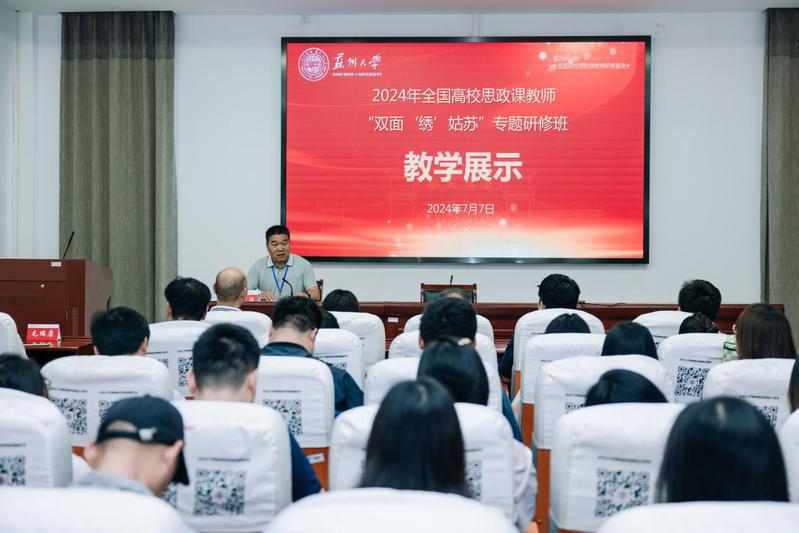 7月7日上午,“双面‘绣’姑苏”主题研修班教学展示活动在探花 继续教育探花 培训中心105顺利进行。全国高校思政课名师工作室(探花 )负责人田芝健、探花 副院长朱蓉蓉、副院长茆汉成、院长助理孔川,教师代表臧政、王晓蕾、郑善文、戴梦石、毛瑞康以及全体参加研修的思政课教师出席。本次活动由河南工业大学探花 副院长丁建波主持。