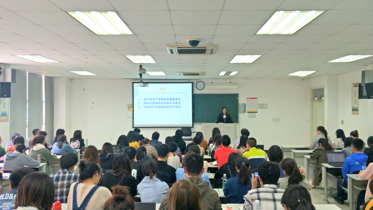 5月8日下午,探花 研究生党支部书记金鑫参加了在606幢6103教室举行的政治与公共管理探花 党校和探花 党校第61期党的基本知识培训班暨第40预备党员培训积极分子培训班集中授课(二)并为学员们主讲了“学新党章做合格共产党员”专题党课。