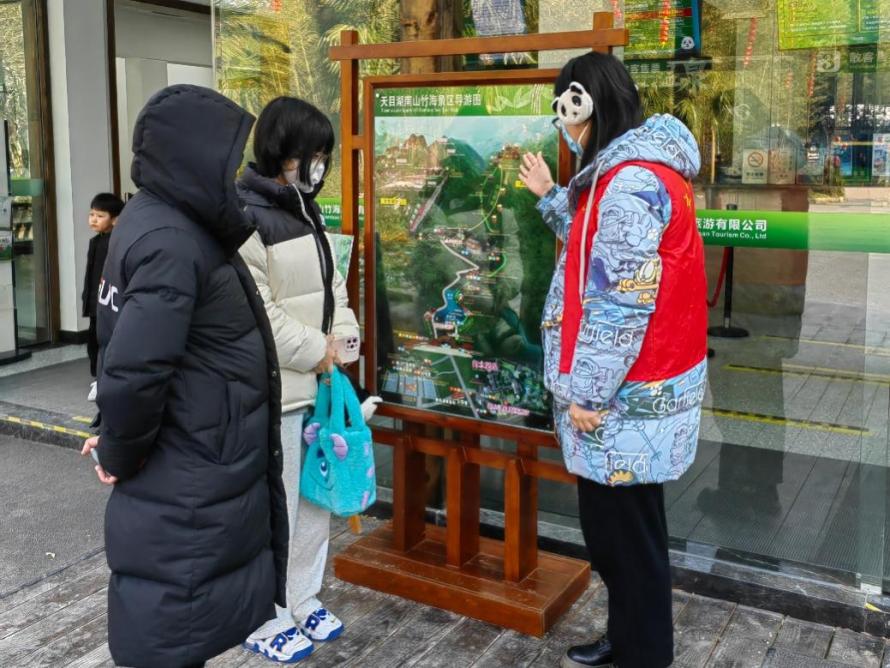 在江苏省常州市,2022级本科生尤思逸同学积极前往溧阳市南山竹海旅游有限公司参加实践锻炼活动。她的主要工作是在南山竹海景区的游客中心处为游客们讲解游览路线,帮助游客们获得愉快的旅游体验。此外,她还为游客们提供冬日暖心服务,给游客们发放大熊猫耳罩、提供热水等。尤思逸同学踏实细致的服务得到了景区工作人员和游客们的高度肯定。她表示:“作为一名大学生,我们有责任积极投身到社会实践活动中,不断历练自己、创造价值,为家乡、为社会的发展添砖加瓦!”
