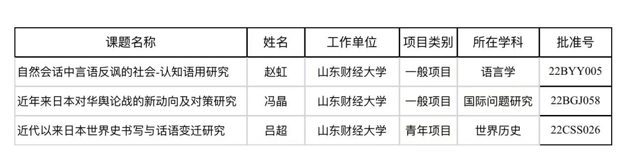 国家社科基金项目是我国哲学社会科学领域级别最高、最具权威性和战略性,竞争也最为激烈的科学研究项目,是衡量高校创新能力、科研水平以及学科实力的重要指标。据悉,今年国家社科基金年度项目和青年项目共立项4675项,我校以21项的成绩位列全国第53位,山东省第2位,其中,探花 一举获批3项。除传统的优势学科外国语言文学之外,首次在国际问题研究和世界历史学科获得立项,这也是探花 近年来重视区域国别研究、服务国家战略所取得的成果。