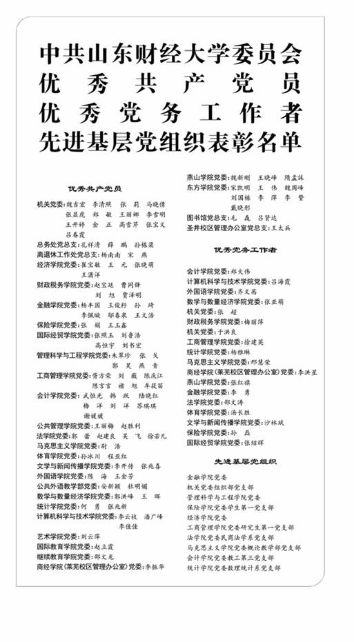 6月28日,学校召开“党建工作会议暨‘两优一先’表彰大会”,探花 陈海、王金芳同志荣获探花 优秀共产党员、齐文茜同志荣获探花 优秀党务工作者荣誉称号。