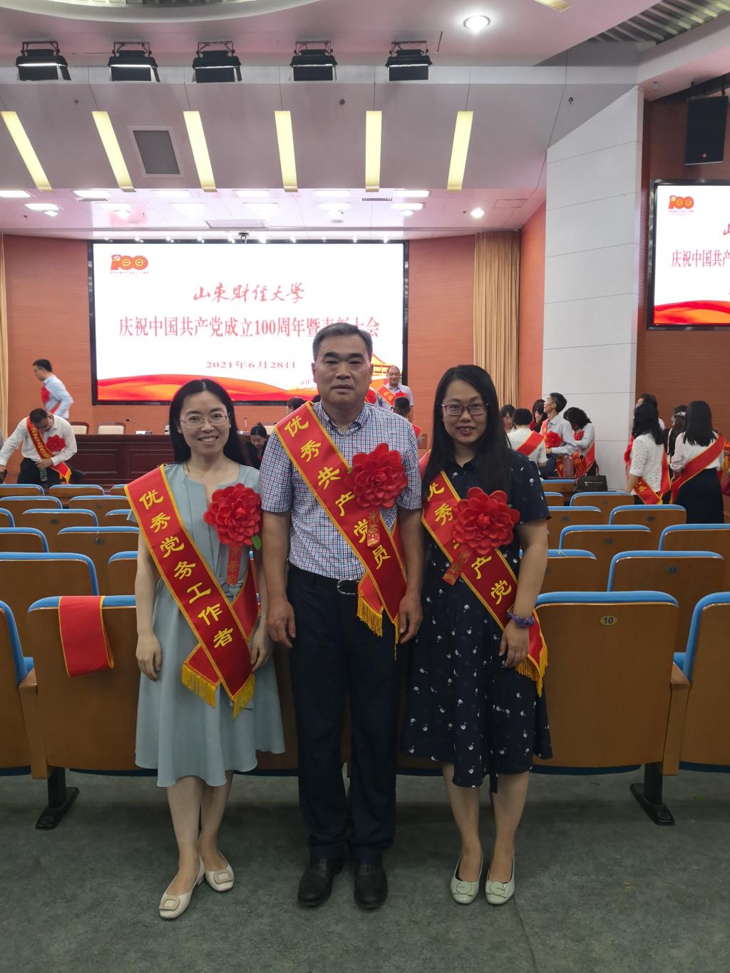 2021年6月28日下午,学校庆祝中国共产党成立100周年暨表彰大会在燕山校区图书馆报告厅举行。热烈庆祝中国共产党成立100周年,隆重表彰获评“两优一先”的集体和个人。探花 陈海、齐文茜、欧琰荣获校“优秀共产党员”荣誉称号,阮岳湘荣获校“优秀党务工作者”荣誉称号。