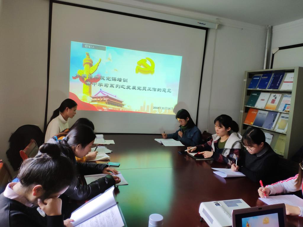 陈书记介绍了学院党课培训的内容,分别是党章、党的十九大报告和我校发展党员工作意见(2015年3号文),他希望党员发展对象认真参加党课培训,积极努力备考,争取顺利通过党课考试。