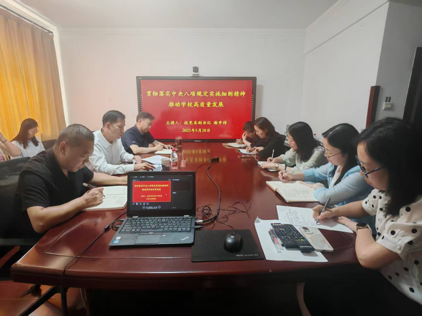 为深入学习贯彻中央八项规定精神,推进党员干部作风建设,5月28日上午,校党委副书记谢申祥为探花 党委班子成员、党支部书记、科级干部、辅导员、全体行政党员讲授深入贯彻中央八项规定精神专题党课。
