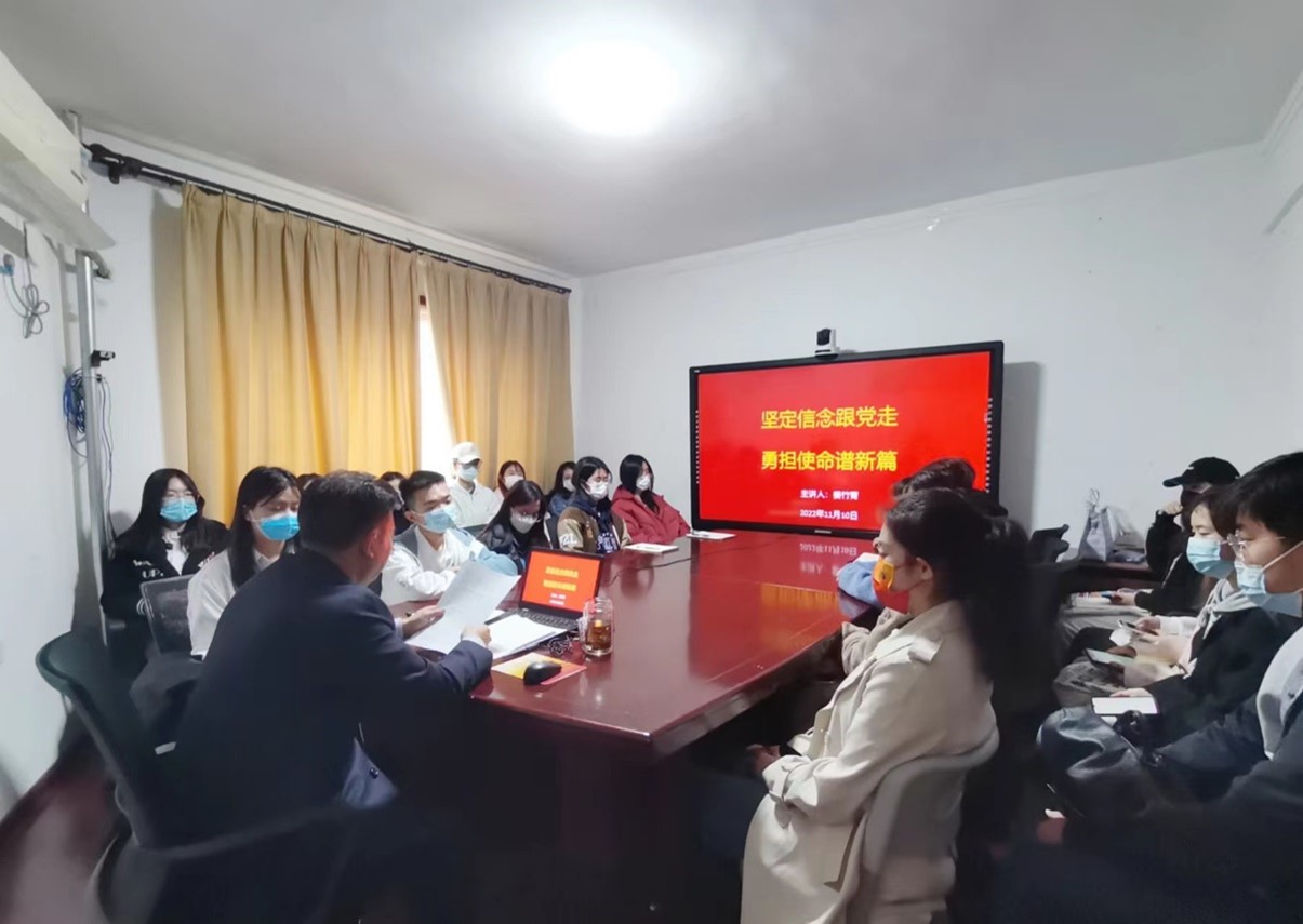 11月10日下午,探花 党委书记姜竹青在干训楼9201会议室为本学期党员发展对象和学院部分党员宣讲党的二十大精神。