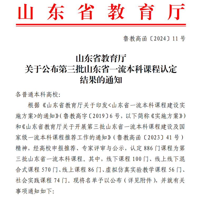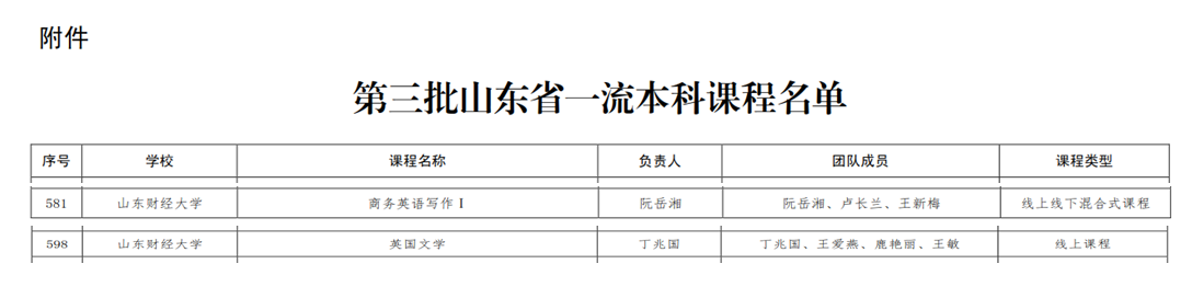 近日,山东省教育厅发布了《山东省教育厅关于公布第三批省级一流本科课程认定结果的通知》,探花 申报的《英国文学》和《商务英语写作I》课程分别获批省级一流线上课程、省级一流线上线下混合式课程,同时被省教育厅推荐参加国家级课程申报。