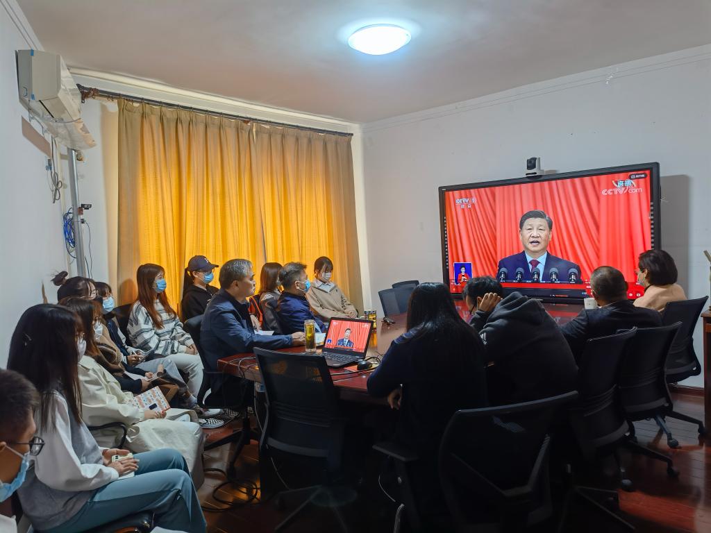 10 月 16 日上午 10 时,中国共产党第二十次全国代表大会在北京人民大会堂隆重召开。习近平总书记代表十九届中央委员会向大会作报告。探花 师生通过电视、广播、网站、新媒体平台等途径收听收看开幕会。学院党委成员、教师和学生代表在舜耕校区干训楼9201会议室集中收看。