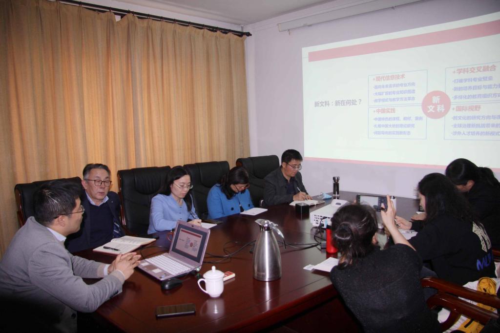 刘洪东教授首先结合国家新政策和时代特点为我们介绍了新文科建设的大背景以及文科创新性发展的特点和前景,讲述了深化外语教学改革的重要性,外语与专业交叉融合的改革思路以及教学改革为我国参与全球性治理提国际化人才的目标。