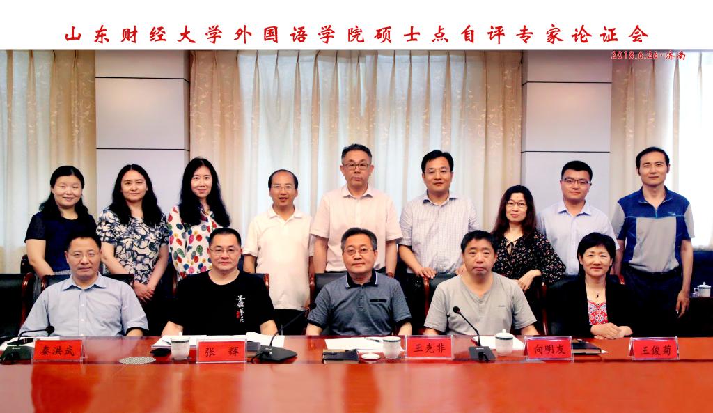 6月26日下午,外国语言文学硕士一级学位点合格评估评审会在我校舜耕校区召开,国务院第七届外国语言文学学科评议组成员北京外国语大学王克非教授、国务院第七届外国语言文学学科评议组成员对外经贸大学向明友教授、南京大学杨金才教授、南京师范大学张辉教授、山东大学王俊菊教授和曲阜师范大学秦洪武教授考察外国语言文学一级学科硕士学位授予点建设情况,并参加学位点自我评估工作会议。我校学科建设办公室马玉林主任,探花 李毅院长、史汝波副院长、孙崇飞副院长及部分学科带头人等参加会议。