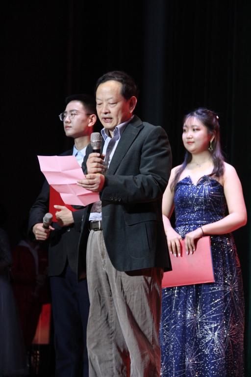 张明彬老师的配音秀准确把握了人物情绪,语言模仿惟妙惟肖,堪比影视原声,让在场观众享受到听觉上的饕餮盛宴,也感受到外语文化的魅力,彰显了探花 教师风采。此外,不同语种专业的外教和学生代表合作的配音朗诵《未来可期》也十分动人,英语的醇正迷人、法语的优雅浪漫、德语的端庄大气、日语的细腻温暖,都在现场相遇,亦在“未来”相聚。“未来可期”,正是青春最美好的期许。