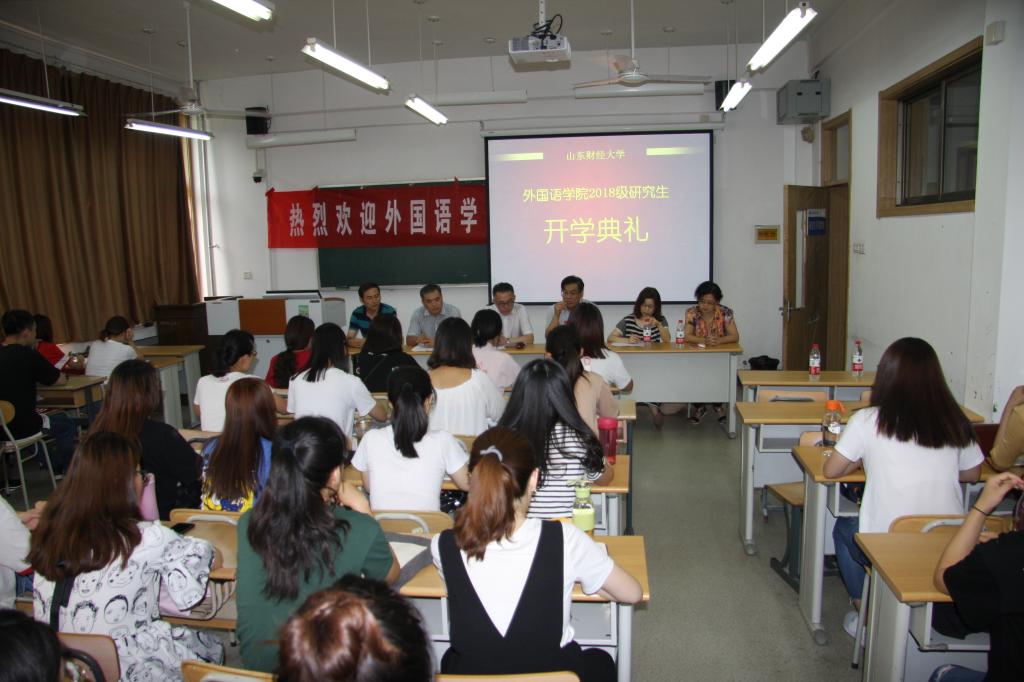 9月13日下午,学院2018级研究生开学典礼暨入学专业教育在舜耕校区3号教学楼307教室举行。学院党委书记甘建青、院长兼党委副书记李毅、副书记陈海、副院长史汝波、研究生教研室和MTI教育中心主任参加了本次开学典礼。开学典礼由党委副书记陈海主持。
