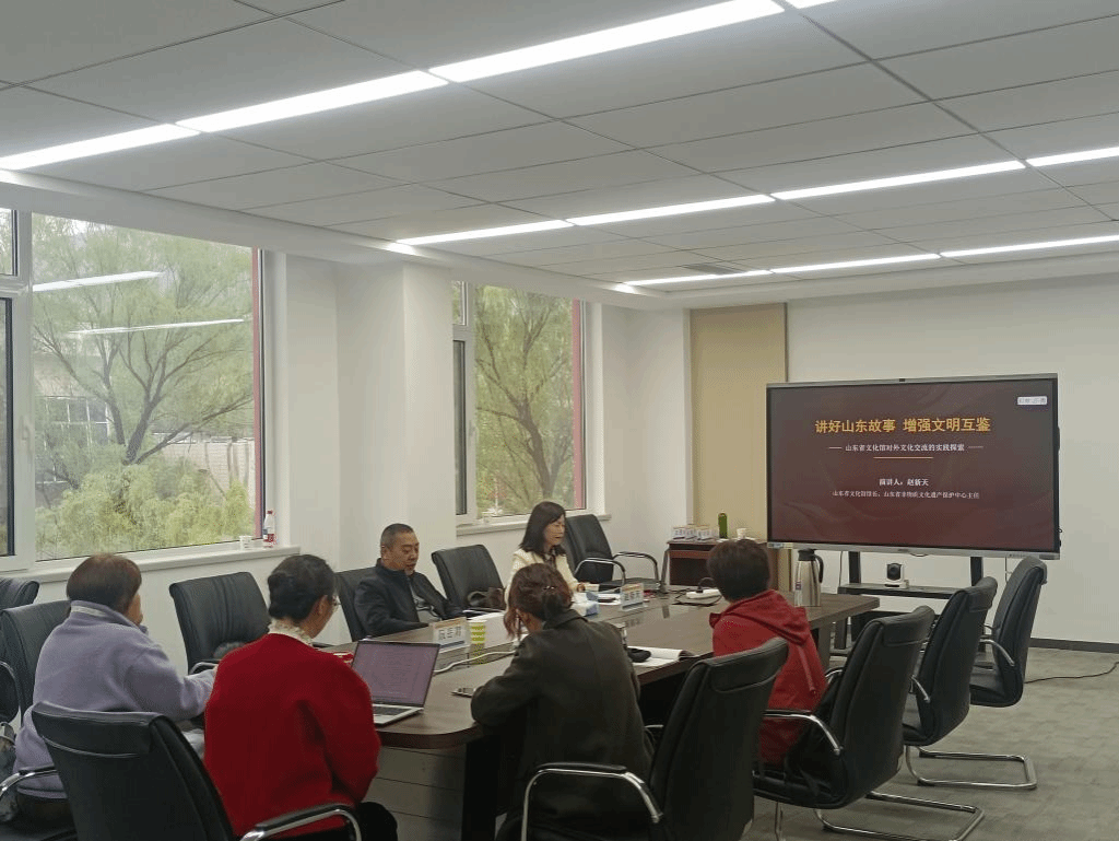讲座中,赵新天馆长系统阐释了非物质文化遗产的定义、分类与核心价值,介绍了山东省文化馆的发展历程、非遗保护职能与山东非遗资源概况,并结合“欢乐春节”“孔子家乡 好客山东”文旅推广等实践案例,分享了山东非遗对外文化交流的探索成果,展现了齐鲁非遗走向世界的生动实践。于秀金院长在总结中指出,非遗文化是传播中国文化的重要载体,对文学翻译、外语学生实习实践具有重要意义。于院长强调,文学翻译研究要打破传统边界,与非遗文化深度融合,深入挖掘相关课题,以非遗为桥推动文明互鉴。