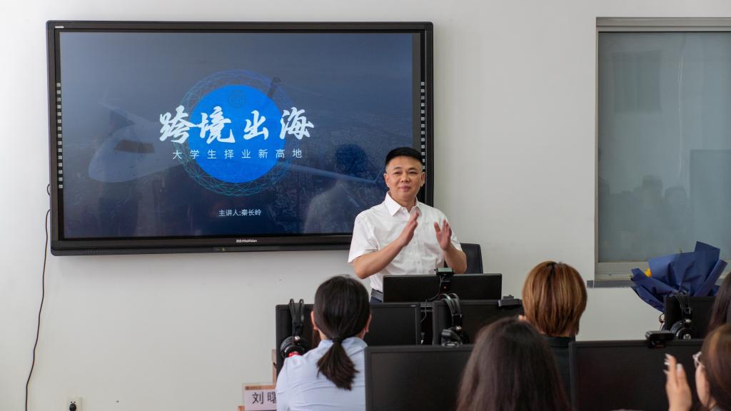 秦长岭会长首先向大家介绍了秦工国际集团的发展历程,并结合自身的创业经历及大学生涯,鼓励学生们在大学期间通过社会实践来建立自信。秦会长特别强调了外语在跨境电商领域的核心价值,他说语言能力是跨境电商中的一大优势,无论在哪个环节,语言沟通能力都是不可或缺的。秦会长还向同学们介绍了跨境电商的分类、发展现状、人才现状等最新的业态信息,他指出,目前跨境电商行业面临着人才短缺的困境,急需大量具备语言能力的专业人才。针对“企业招不到人,学生就业困难”这一现状,他鼓励学生们多实践、多探索,为自身的就业选择创造更多可能性。讲座最后,秦会长回答了与会同学关于就业和创业的相关问题。秦会长通过亲身经历和行业趋势等方面的讲述和分析,对外语人才应该具备的实践能力和未来的就业方向提供了宝贵的指导和参考。