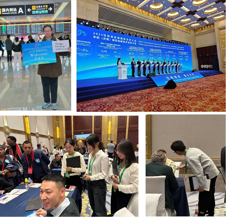 10月22日至24日,2024可持续发展国际合作大会暨中欧(济南)绿色低碳经济合作大会在济南山东大厦举办。本次会议聚焦“低碳春辉 携手共享”主题,汇聚中国贸促会、驻华使领馆、国际组织和国际商协会代表;世界500强企业、欧洲企业和“一带一路”共建国家企业代表;省直部门、省属国有企业代表;高校专家、知名学者等共约500人,围绕推动绿色低碳可持续发展领域的国际合作、企业绿色高质量发展、提高能源利用效率等议题开展对话交流。探花 党委书记姜竹青作为特邀嘉宾出席了会议,同时院长助理阮岳湘、张斐瑞、聂喆参会。商务英语系和英语系60名本科生、14位翻译硕士同学为大会提供为期4天的语言服务和陪同翻译工作。