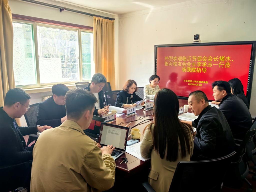 4月6日上午,临沂市贸促会会长褚冰、山财校友会临沂代表处会长李承志、副会长赵玉祥、秘书长张敬轩一行访问探花 。校合作发展处副处长徐彬、院长于秀金、院长助理兼国际语言服务产业学院执行院长张斐瑞、产业学院团队成员参加座谈。双方围绕人才培养、校企合作等议题展开讨论,并就推进产教融合、服务区域经济发展达成多项合作共识。
