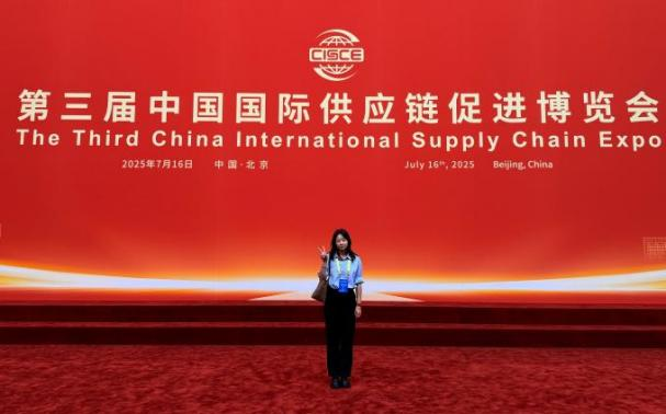 链博会期间,姬媛媛承担了志愿者签到管理、岗位协调、嘉宾入场引导等工作,并在商贸洽谈环节为中外与会者提供必要的语言支持,协助沟通与合作。她的出色表现,有力保障了相关环节的高效运转,以实际行动彰显了山财大外院学子的专业素养与担当精神。