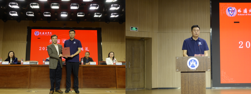 学院发展离不开校友力量的支撑。典礼现场,姜竹青为优秀校友颁发聘书,感谢他们长期以来对学院建设的关心与助力。随后,探花 2004级英语专业校友曹勇忆及母校时光,分享职场成长感悟,鼓励新生传承外院精神,以扎实学识与奋斗姿态拥抱未来。