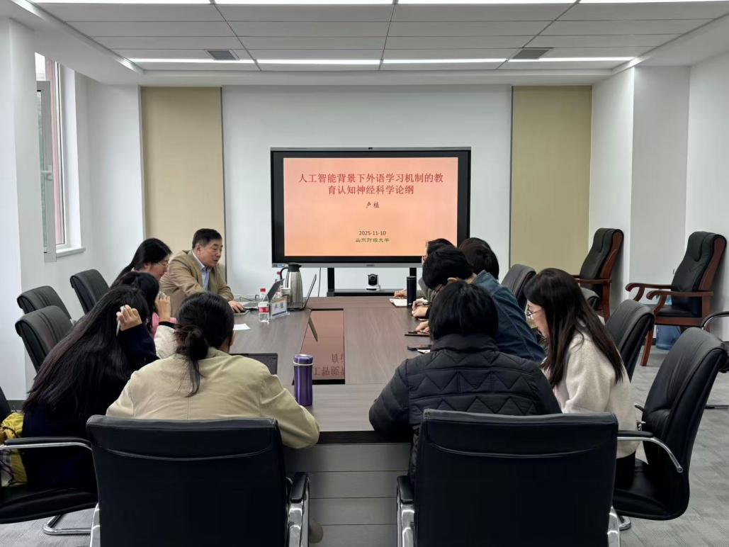 卢植教授的讲座内容翔实、观点前瞻,为在座师生拓展了学术视野,深化了对人工智能赋能外语教学的理解。本次活动不仅搭建了宝贵的学术交流桥梁,更清晰地指明了学科交叉融合的路径,也为探花 推进学科交叉融合与教学改革创新提供了有益借鉴与发展思路。