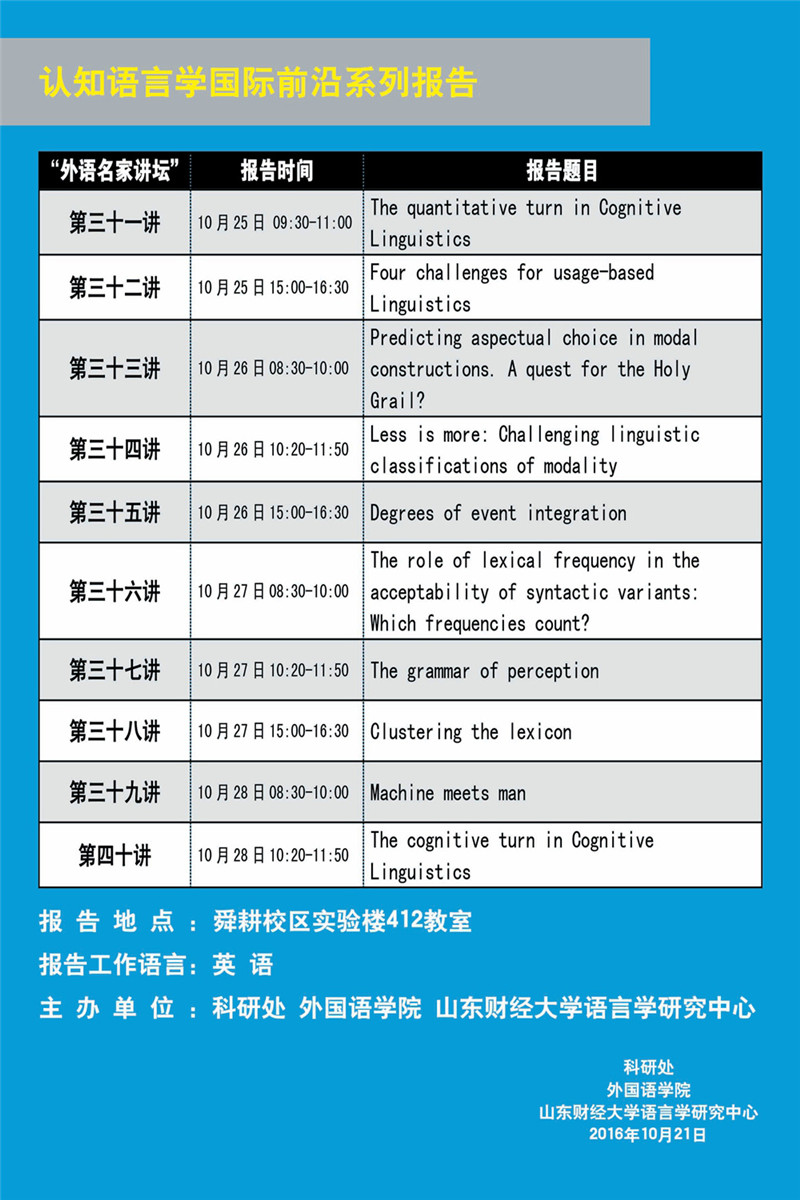 认知语言学国际前沿系列报告暨“外语名家讲坛” 第三十一至第四十讲