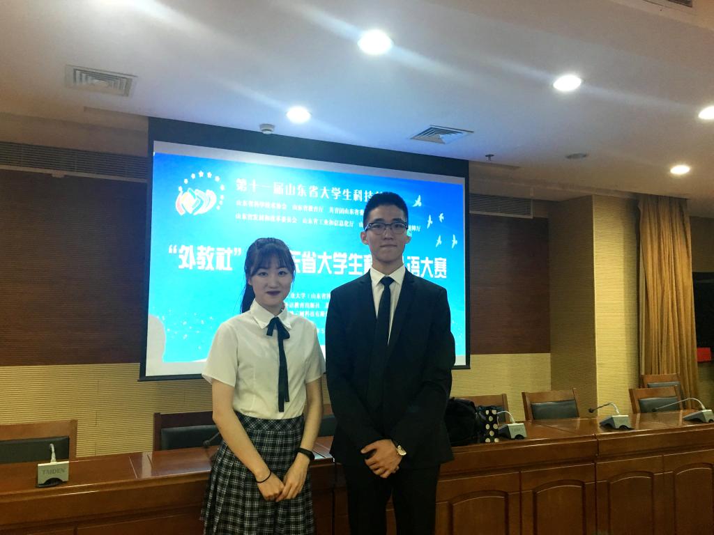 本次大赛由山东省科协、省教育厅、团省委、省发改委、省工信厅、省人社厅联合主办。日语组比赛包括科技日语笔译、定题演讲、现场问答三部分,共有来自省内高校的近60名本科生和翻译硕士参加,共产生一等奖2名,二等奖7名,三等奖21名。在日语系陈艳老师和冯晶老师的指导下,董嘉蓉同学和李锡岳同学凭借扎实的日语基本功、流畅的口语表达和出色的临场表现能力获得评委的一致认可,展示了财大外院学子的风采。
