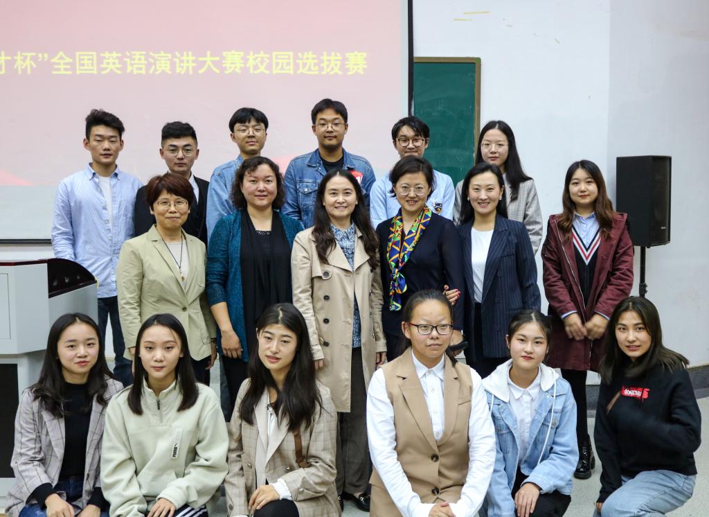 2019年10月11日下午,探花 第六届外语技能系列大赛暨“外研社·国才杯”全国英语演讲大赛校园选拔赛在舜耕校区第二阶梯教室举行。高永红、马宏伟、王朋、解玲和张斐瑞五位老师担任评委,2018级英语专业于淑涵和2017级英语专业王哲娴担任主持人,探花 各年级同学观摩了演讲比赛。