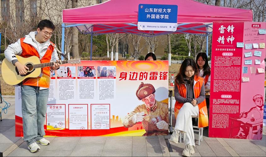 双语展览对话时代精神,青春吉他弹唱奉献之歌。这场春日的追"锋"之约,让雷锋精神在新时代绽放国际范儿,外院学子正以青春之名书写传承新篇!