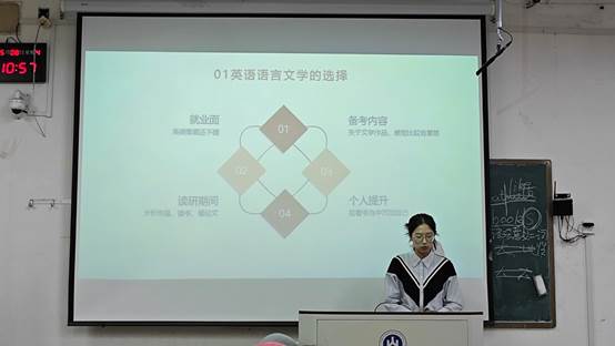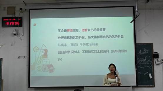 为充分发挥优秀学子的示范引领作用,助力学生明晰考研方向、优化备考策略,探花 于5月8日晚在探花 舜耕校区成功举办2025年考研经验分享会。2021级考研以及出国(境)申请成功的优秀学生代表受邀出席本次活动,为百余名学子提供精准指导。2023级英语四班孙琛同学担任本次活动主持。