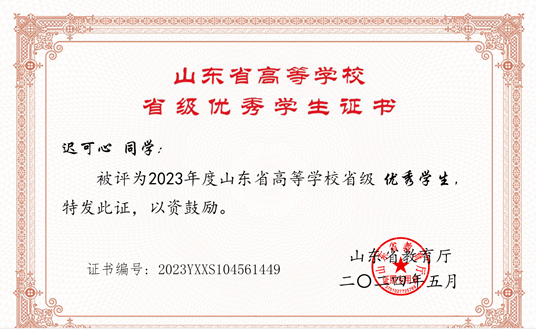 荣誉加身:她多次获得校级、院级“优秀学生”称号及“优秀共青团员”等称号,2023年更被山东省教育厅评为“省级优秀学生”,这些荣誉是对她各方面表现的高度认可。